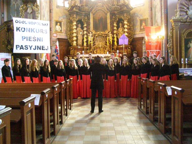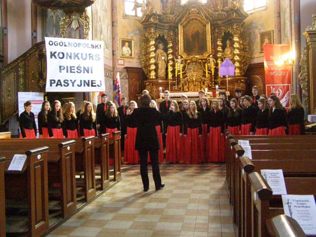 Występ miał charakter uroczysty, tradycyjnie rozpoczęliśmy oprawą mszy świętej. Po mszy rozpoczął się koncert, który poprzedzony został informacją o historii i osiągnięciach zespołu, przedstawioną przez Prezesa Stowarzyszenia Chóralnego Kantylena - Pana Krzysztofa Styczyńskiego. Słowa powitania skierował również do chóru i przybyłych gości Rektor Kościoła ks. Dariusz Marek Bondyra. Po takim wstępie zabrzmiały pieśni pasyjne. Koncert zakończył się wspólnym wykonaniem pieśni "Gdy ja sobie rozważuję...". W wykonaniu wzięli udział członkowie Kantyleny oraz licznie przybyli na koncert absolwenci chóru. Były też podziękowania i gratulacje. Koncert prowadziła Alicja Nowak.